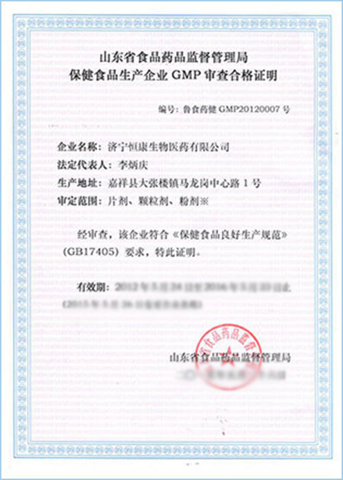 保健食品生產(chǎn)企業(yè)GMP合格證